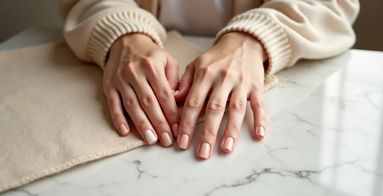 Doch die wahre Meisterschaft der Nude-Maniküre liegt im Verborgenen. Es ist die Kunst der subtilen Perfektion, bei der jeder Schritt zählt. Viele glauben, es gehe nur darum, irgendeinen beigefarbenen Lack aufzutragen. Die Realität ist jedoch, dass gerade bei diesen dezenten Tönen jede kleinste Unregelmäßigkeit sichtbar wird. Die Nagelform, die Gesundheit der Nagelhaut, die makellose Lackierung – all das wird zur Leinwand. Dieser Guide geht daher über das Offensichtliche hinaus. Wir betrachten die Nude-Maniküre nicht als simplen Look, sondern als eine ganzheitliche Philosophie der Handpflege. Der Schlüssel liegt nicht darin, die Nägel zu kaschieren, sondern ihre natürliche Schönheit durch präzise Arbeit und die richtigen Nuancen zu potenzieren.
